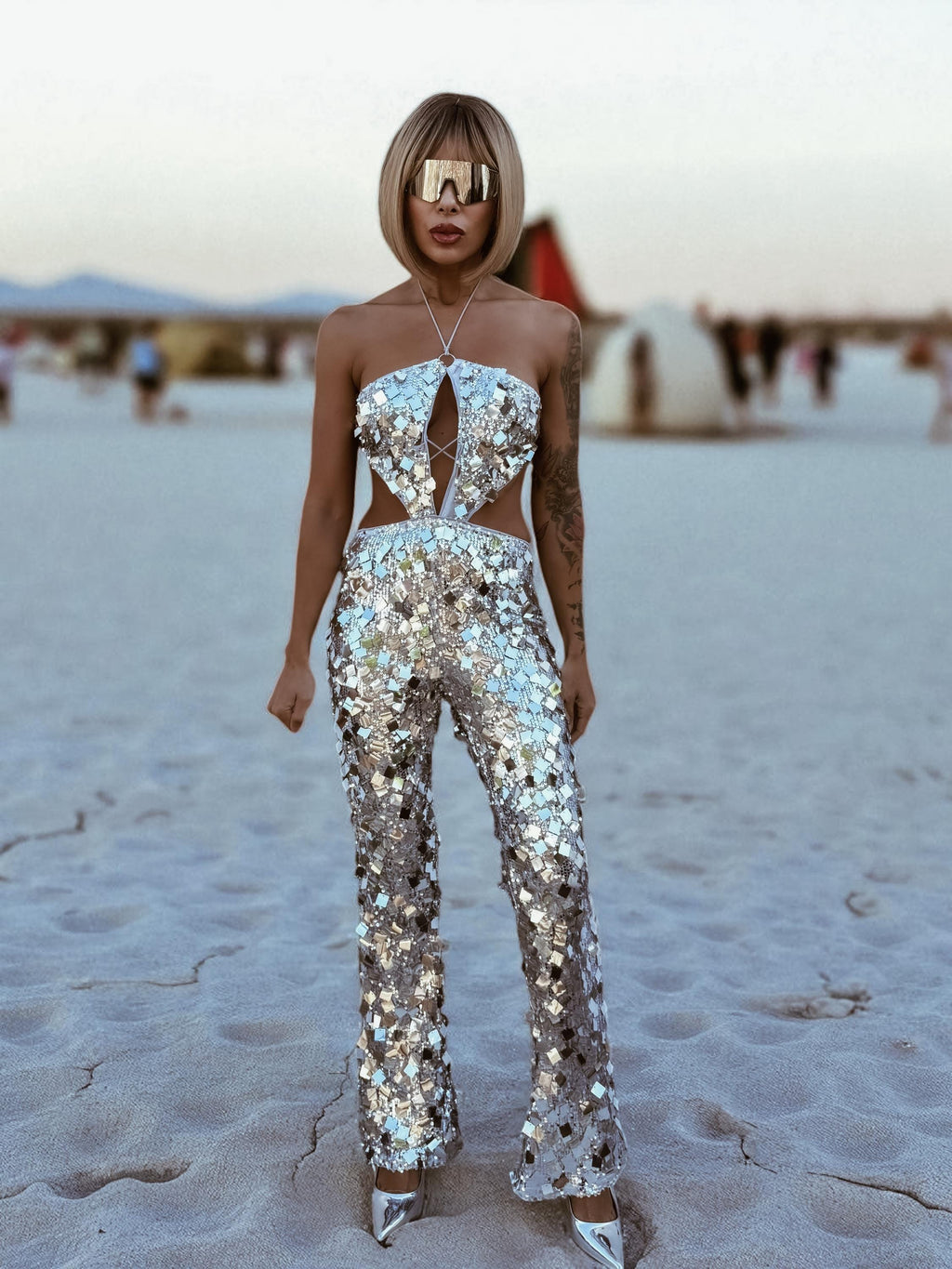 Disco Ball Sequin Cut Out Jumpsuit: 70s Disco Cowgirl Costume, Disco Queen Costume, Western Glam Outfit, Steam Punk Costume, Silver Jumpsuit