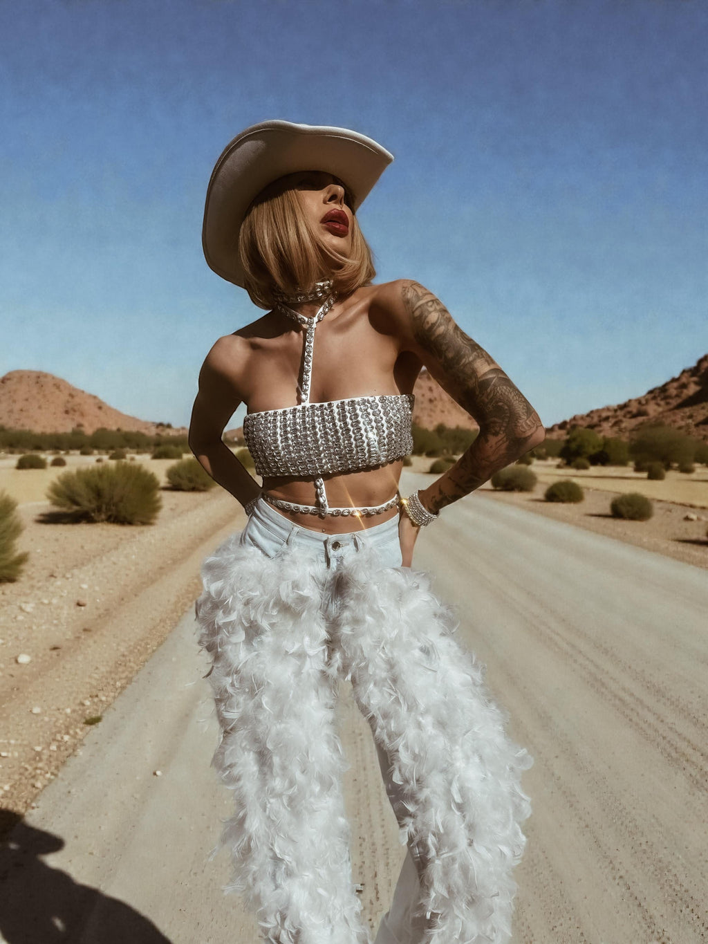 Feathered White Denim Chaps Cowgirl Pants, Faux Feather Fringe Western Glam Pants, White Bridal Pants, Fringe Festival Bell Bottom Pants