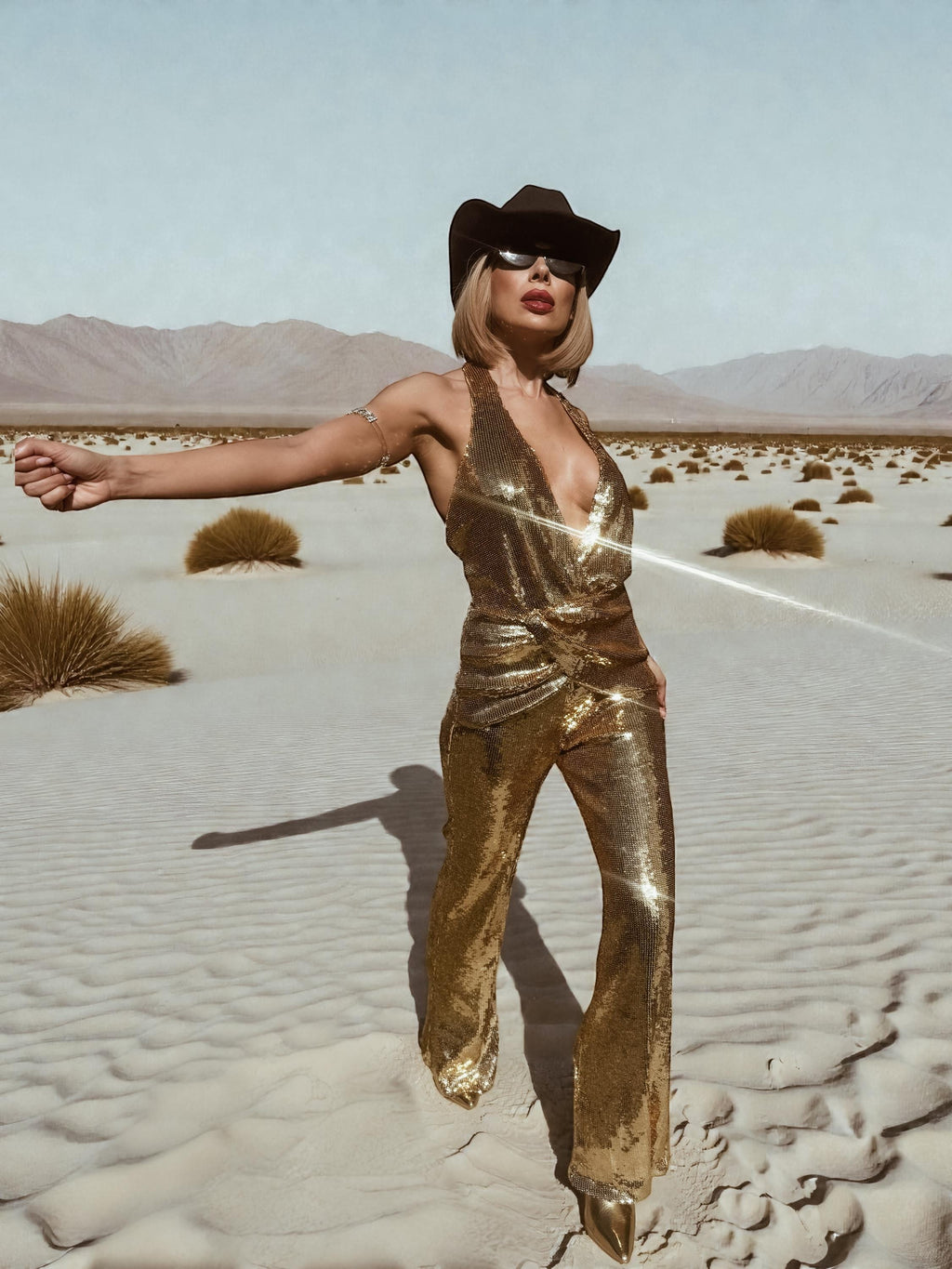 Gold Sequin Disco Jumpsuit: Gold Bell Bottom Festival Jumpsuit, Gold Cowgirl Costume, Disco Queen Costume, Western Glam Outfit
