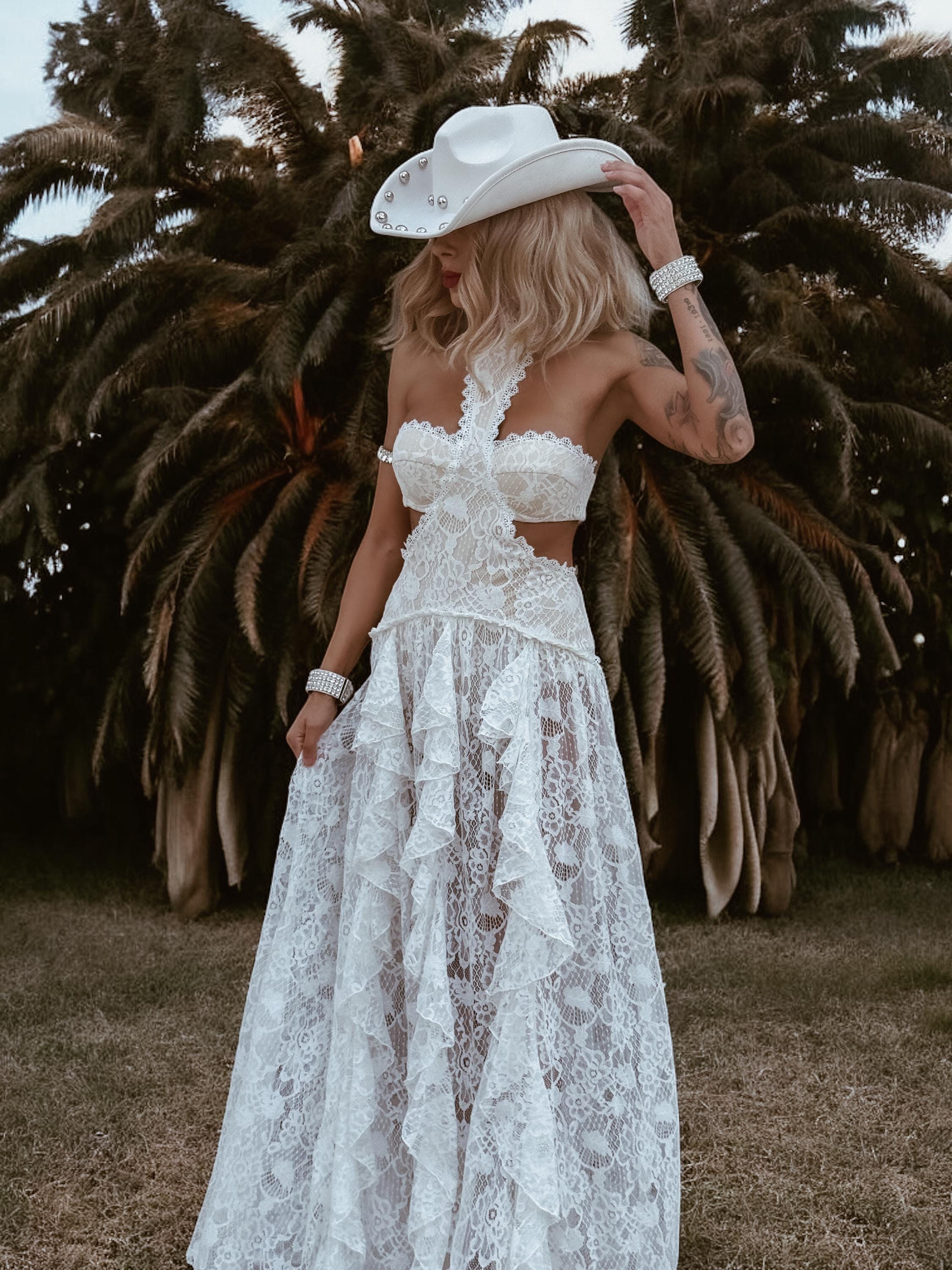 Boho Bridal Lace Gown, Bohemian Western Bride Dress, Bachelorette Party Dress, Boho Elopement Dress