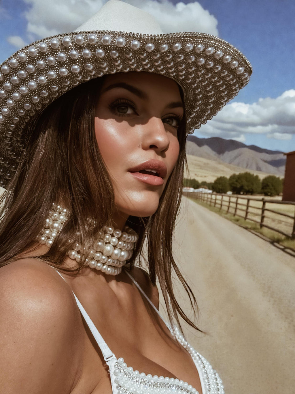 Off White Pearl Rhinestone Cowboy Hat: Western Glam Bachelorette Festival Hat, Pear Cowboy Hat, Western Bridal Hat