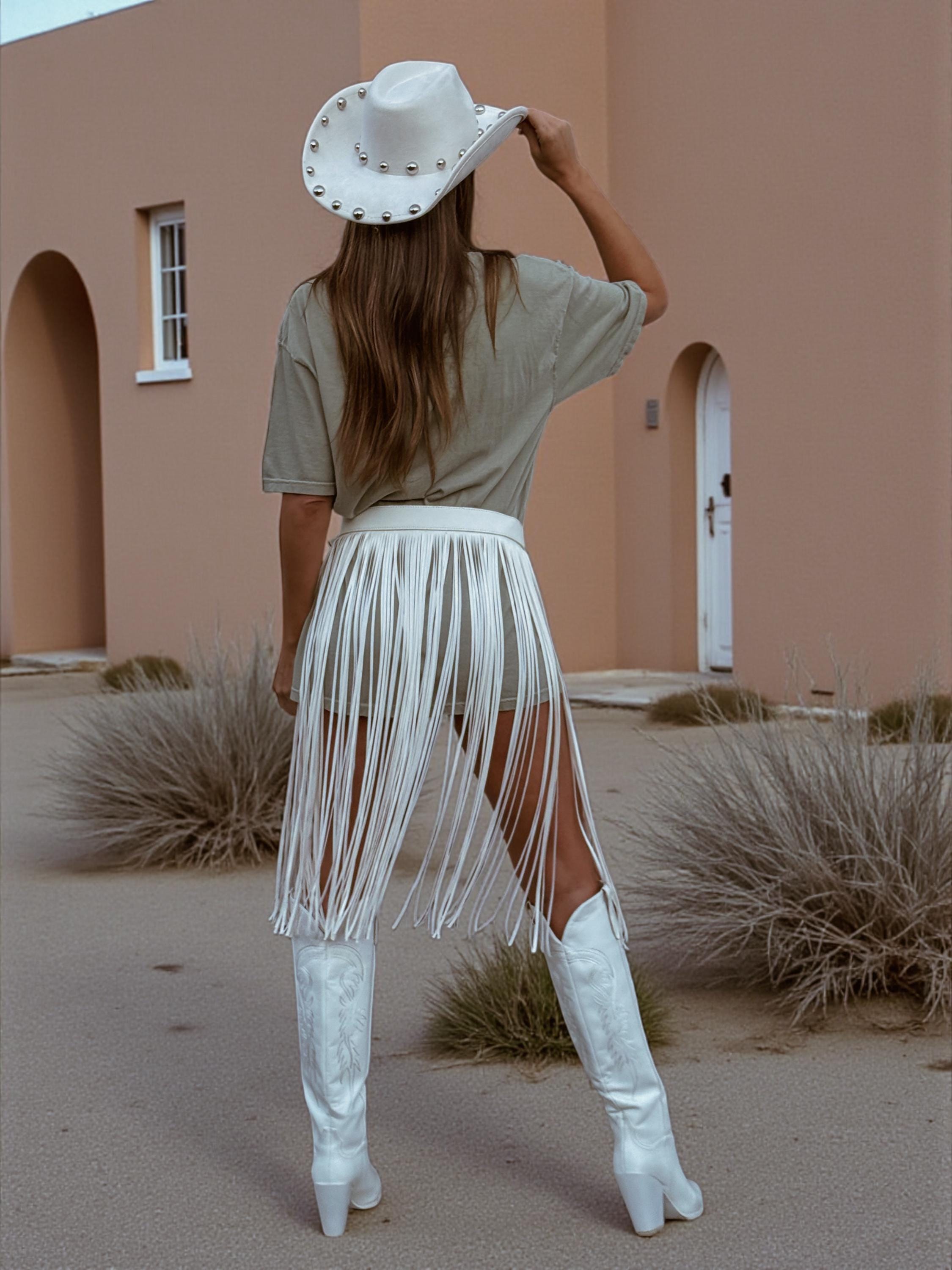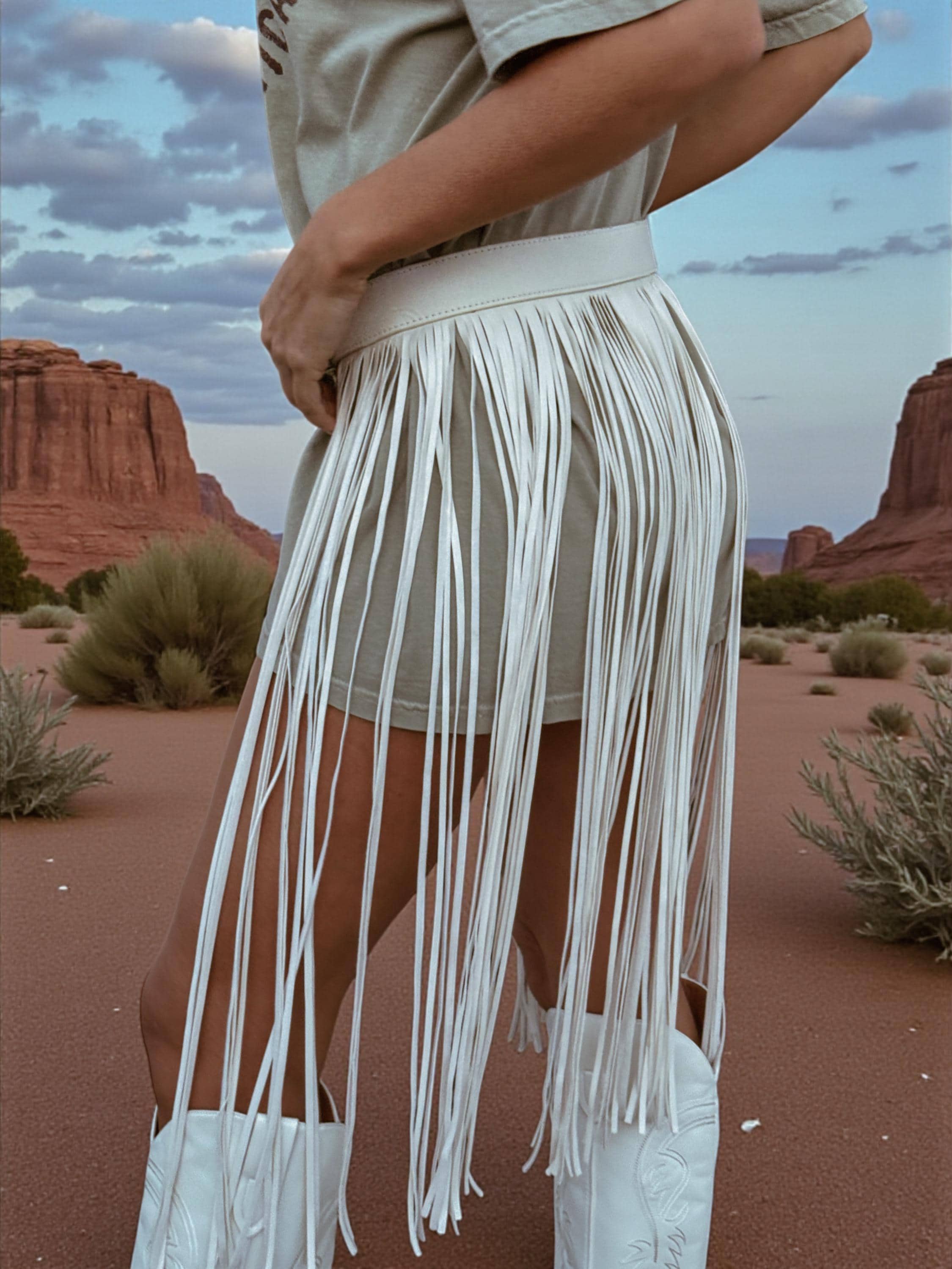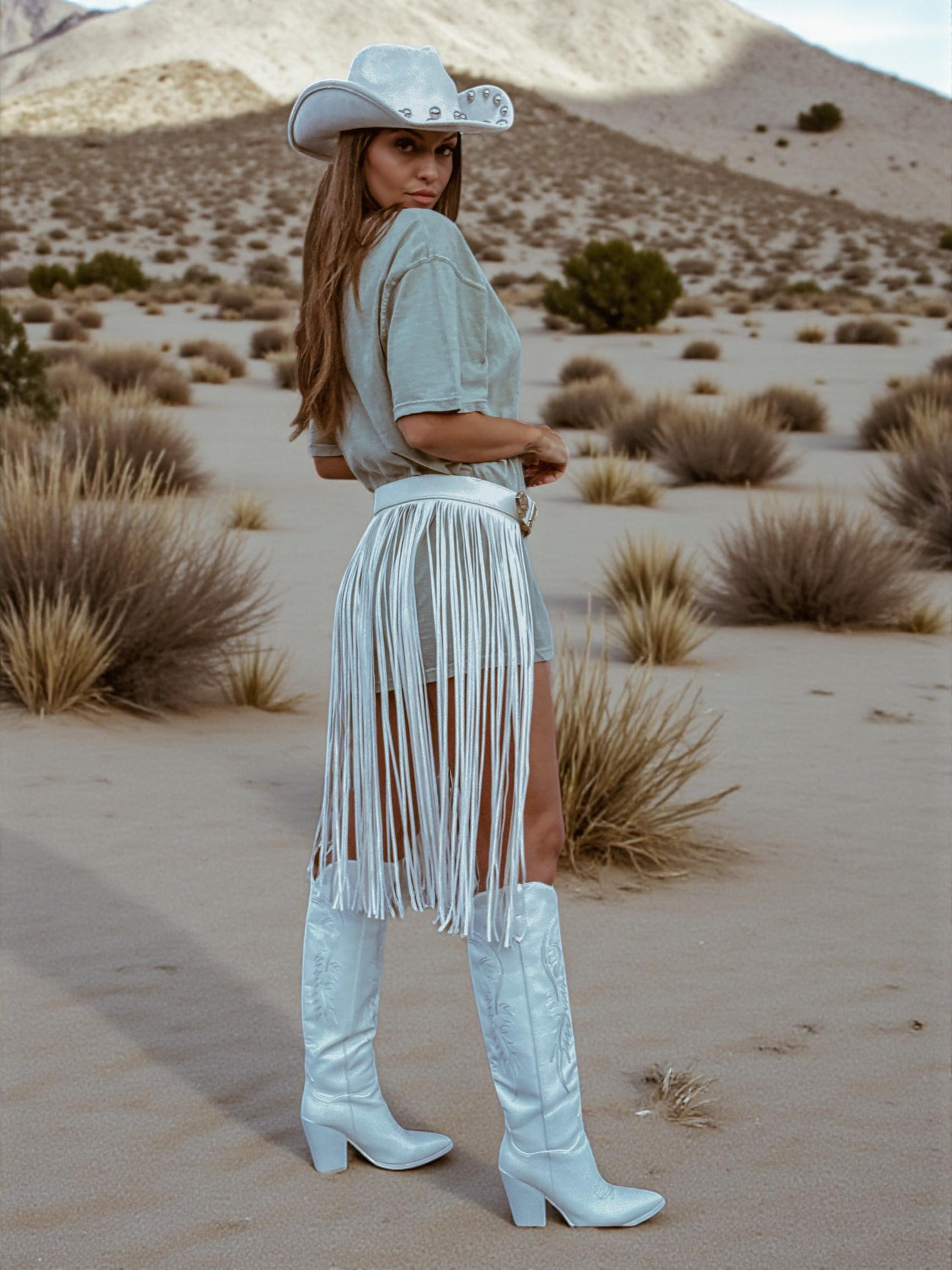 Fringe Cowgirl Belt, Western Long Fringe Belt, Cowgirl Festival Belt, Western Glam Statement Belt, White Cowboy Belt