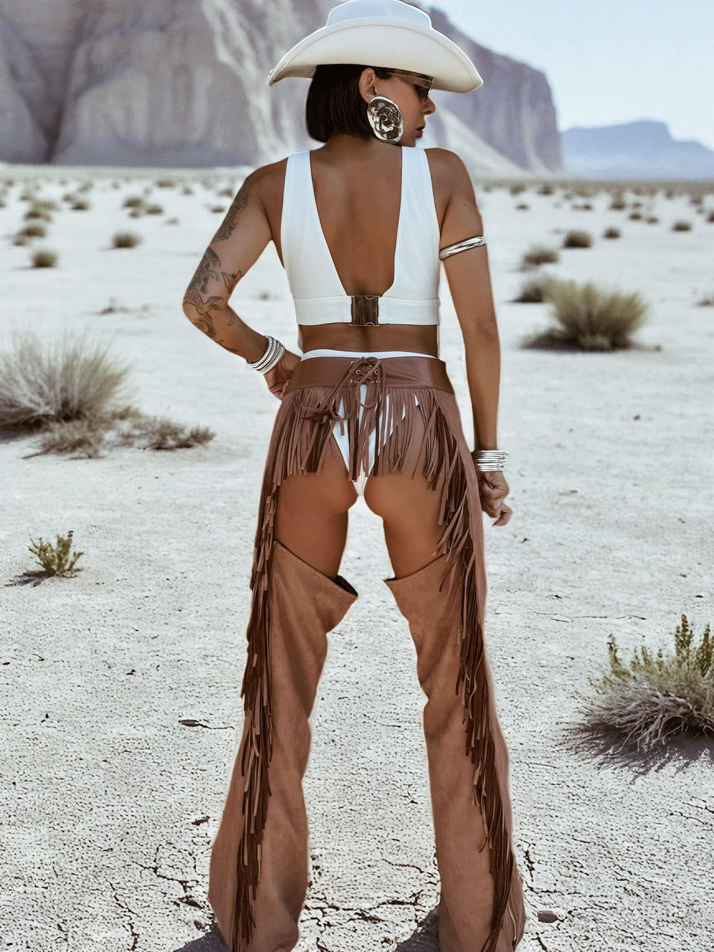 Diamond Fringe Festival Vest, Dazzled Fringe Cowboy Vest, Faux Suede Fringe Cowgirl Top, Backless Fringe Western Vest Top, Western Glam Top
