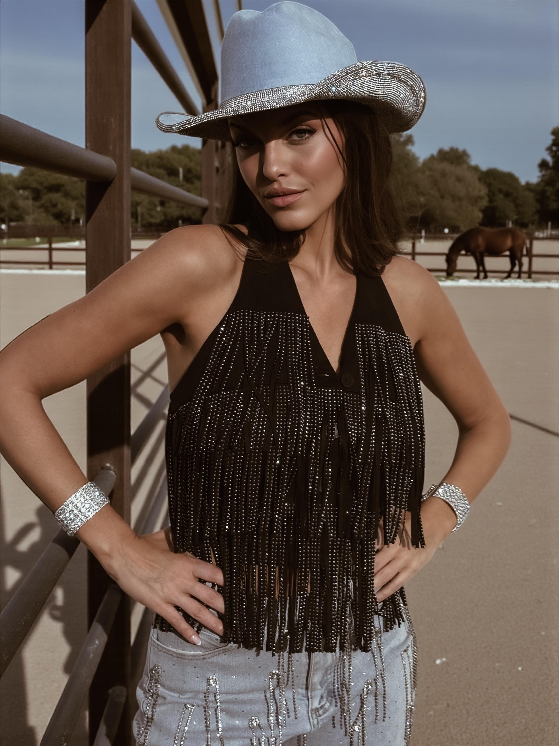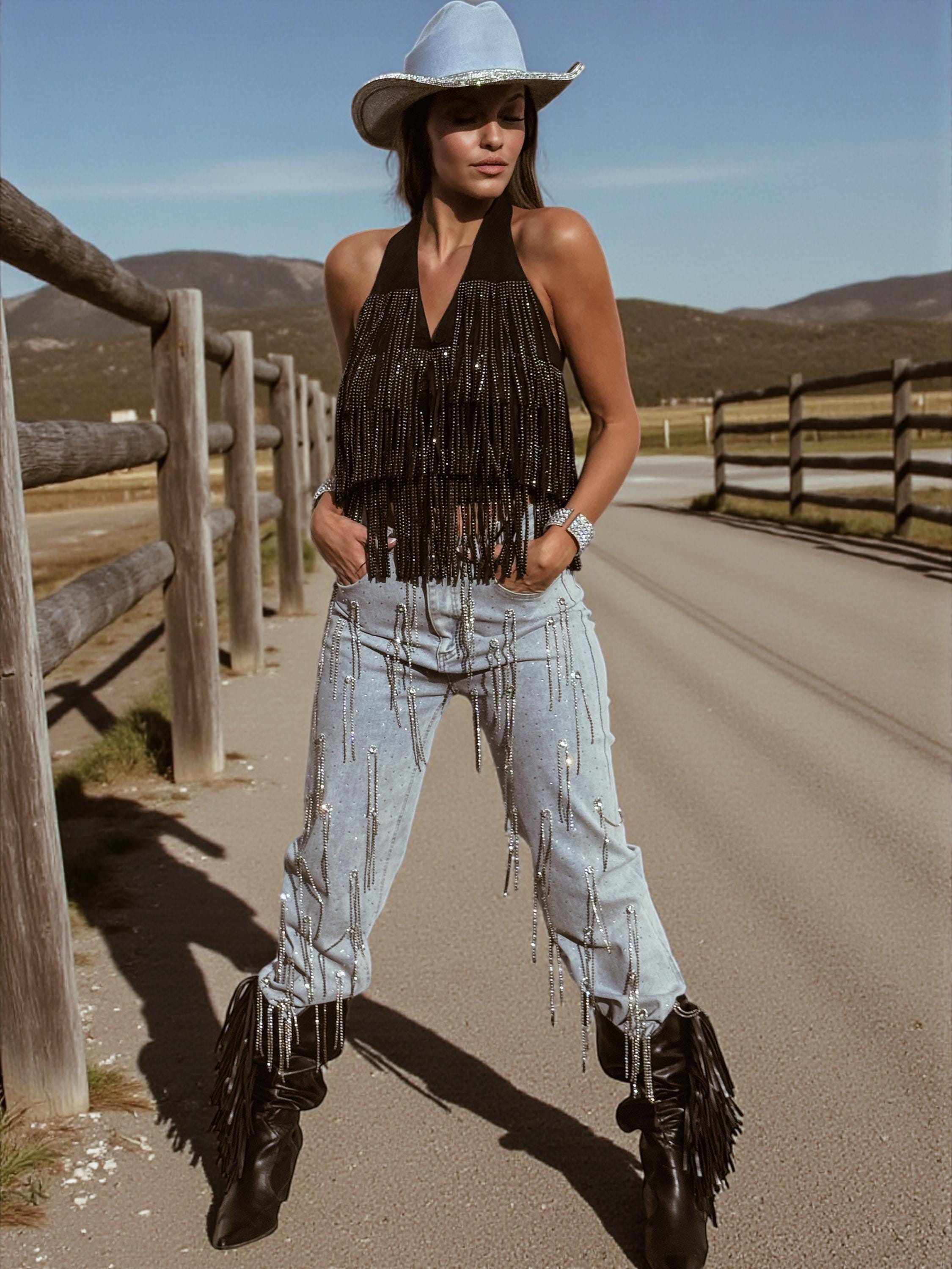 Perfect for festival outfits, concert looks, night outs, disco nights, rave styling, bachelorette parties, and standout cowgirl glam moments.
