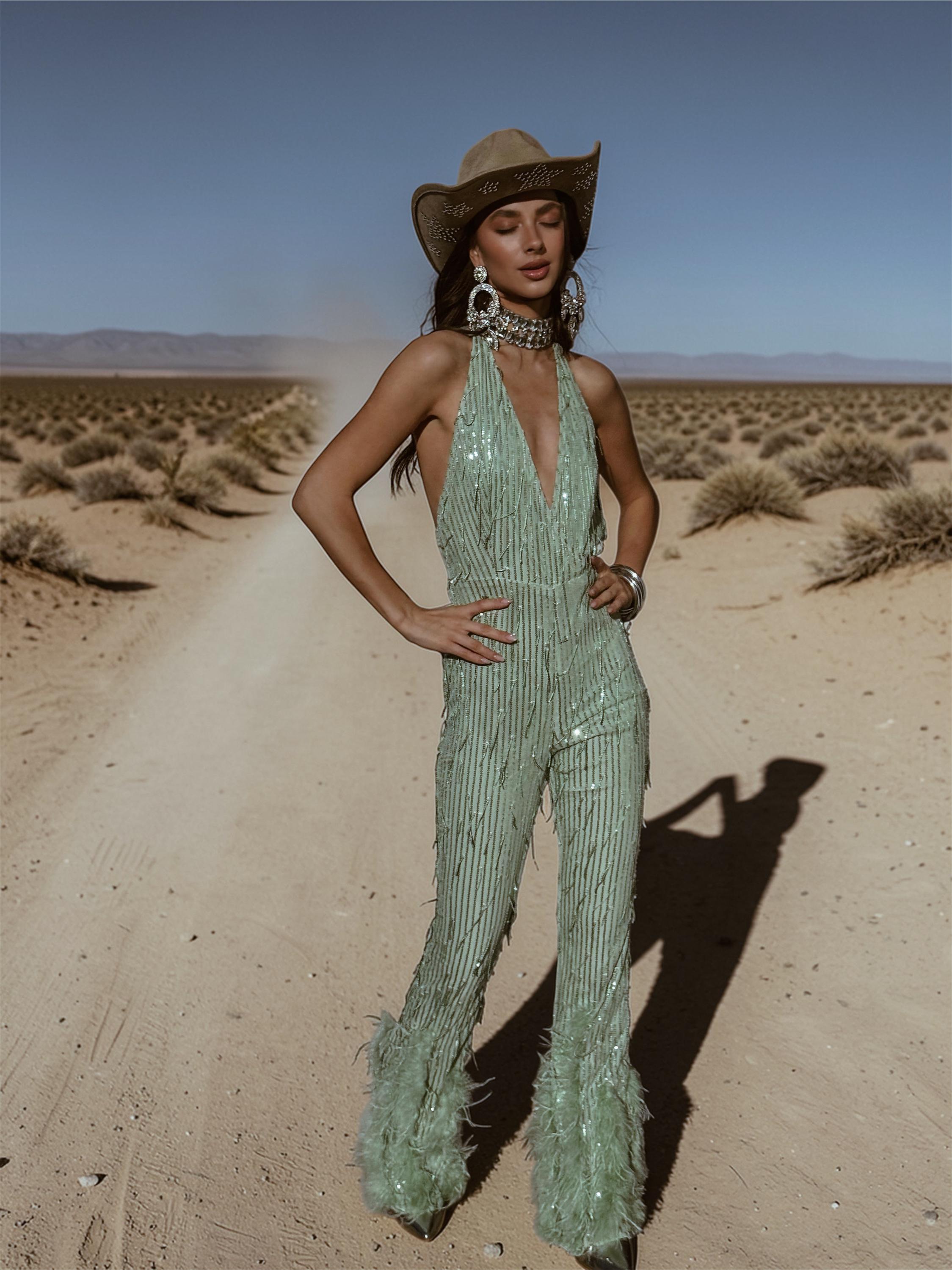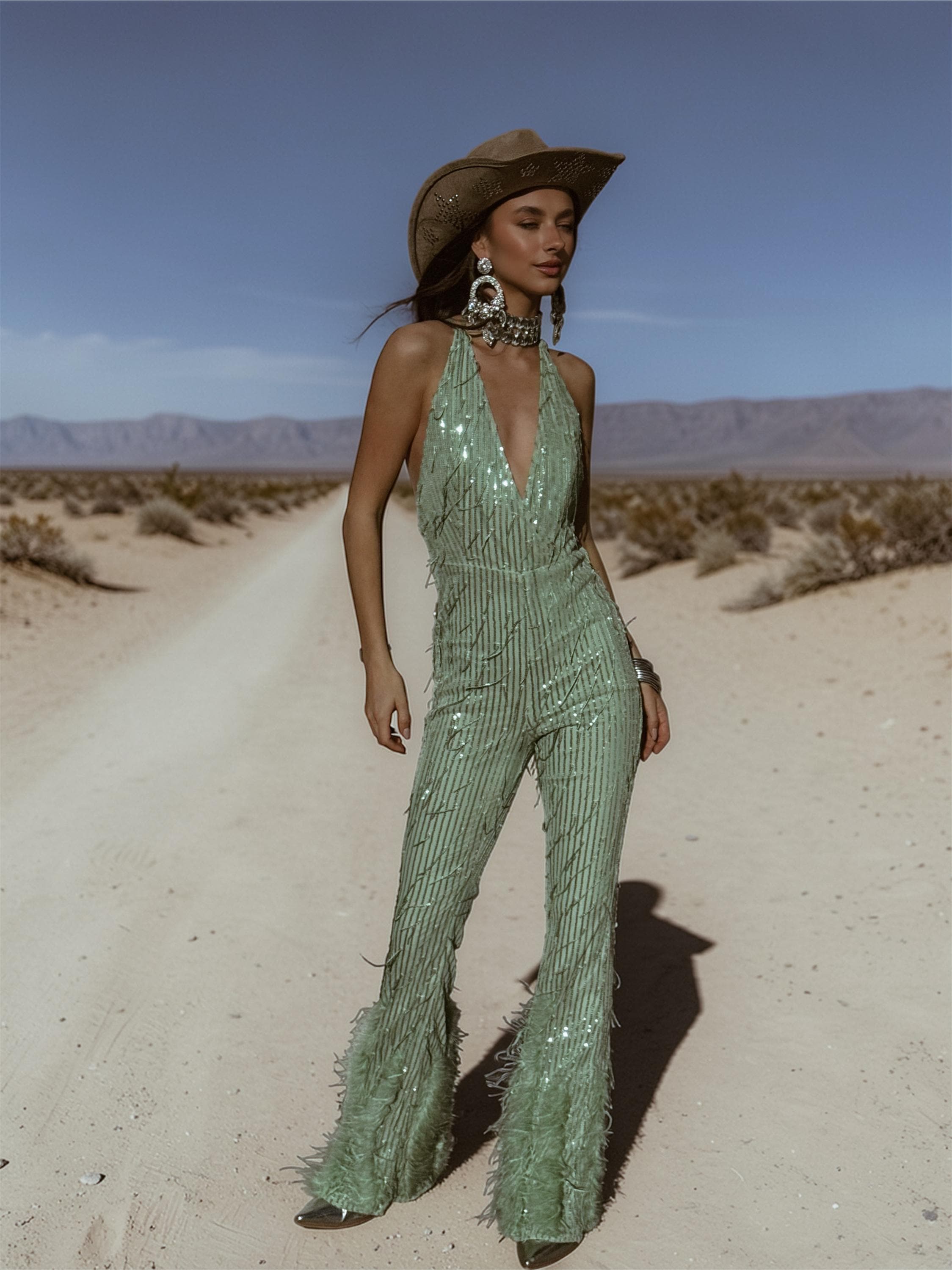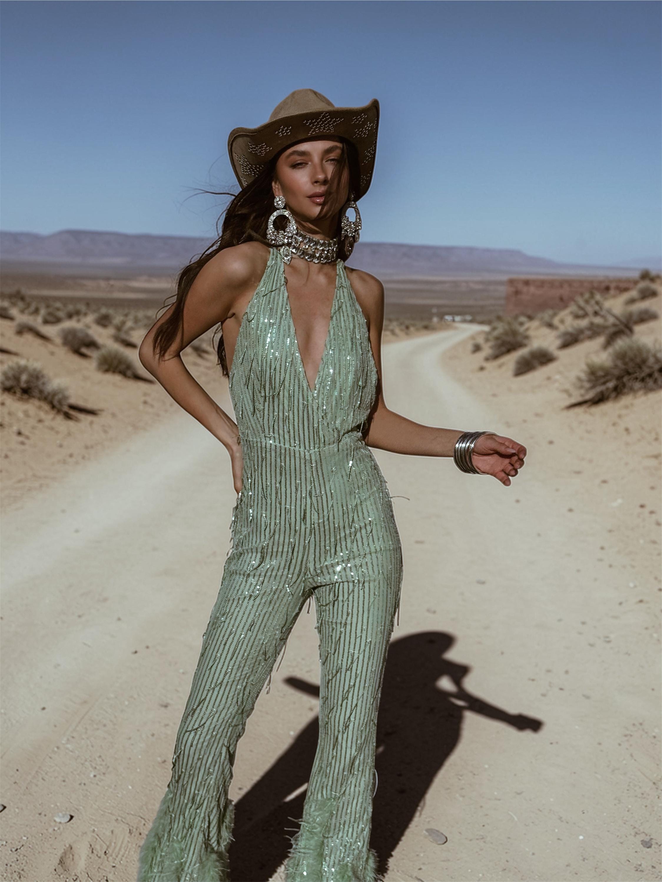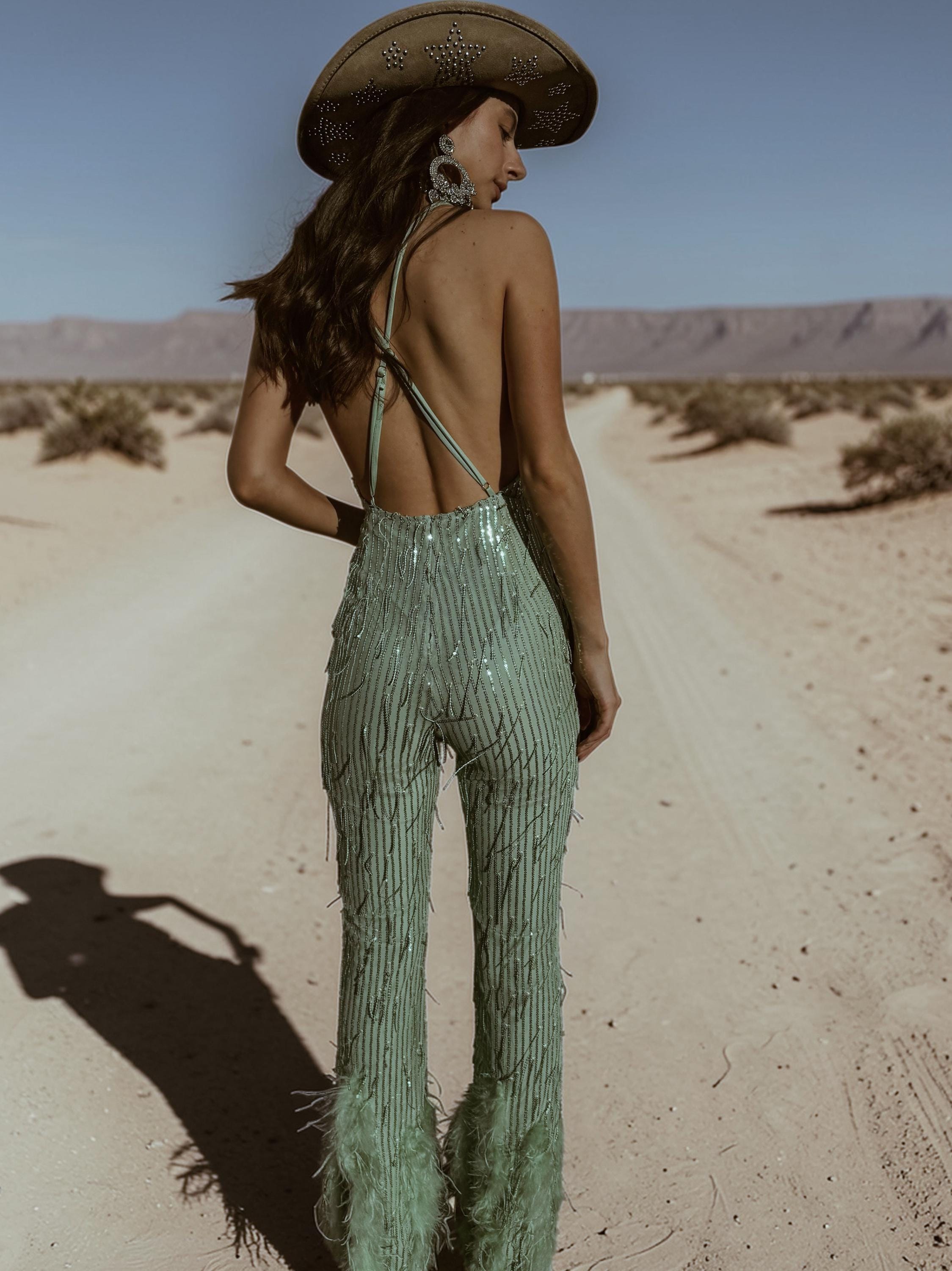 If your energy says disco queen meets Greenen cowgirl — this jumpsuit was made for your entrance.