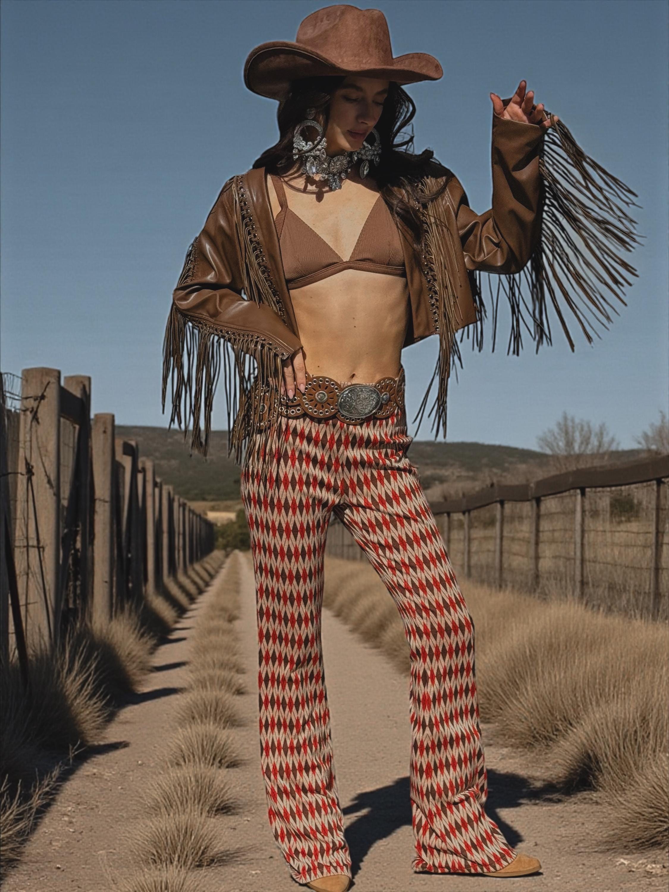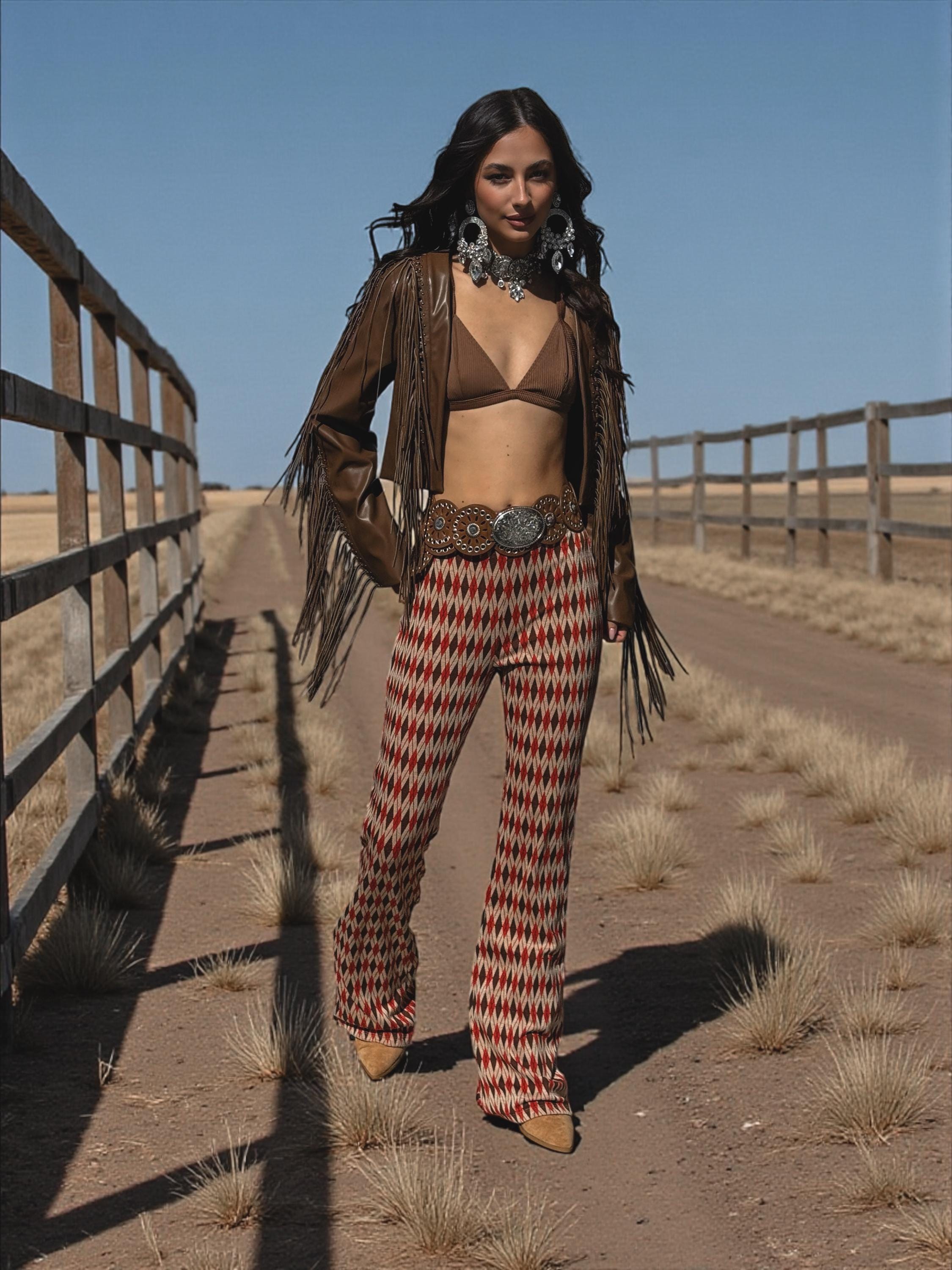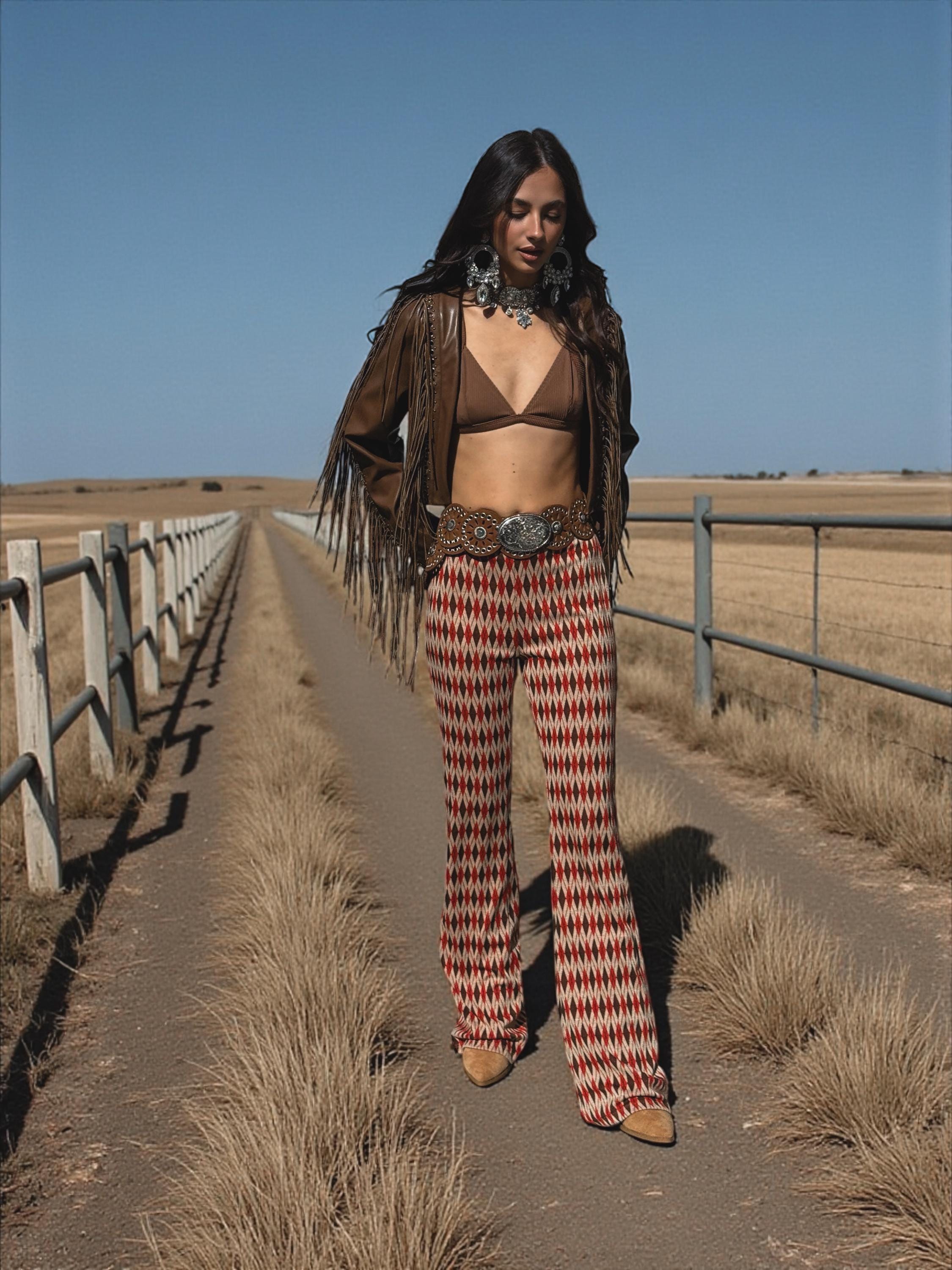 Channel your inner free spirit in these Retro Look Flared Western Pants — a bold throwback piece made for modern-day bohemian souls.