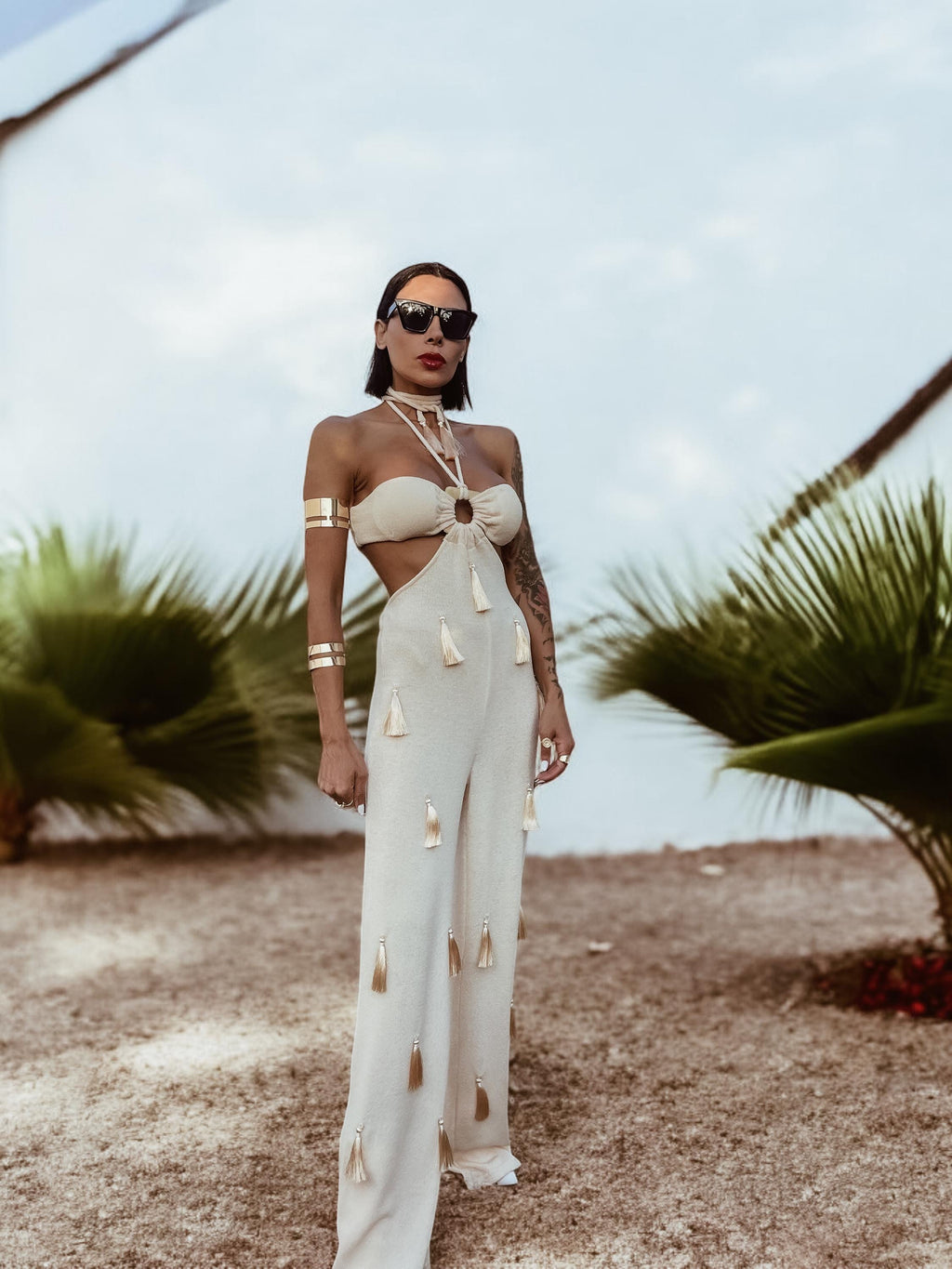 Boho Knit Cut Out Tassel Fringe Jumpsuit Bachelorette Party Outfit Wedding Reception Dress