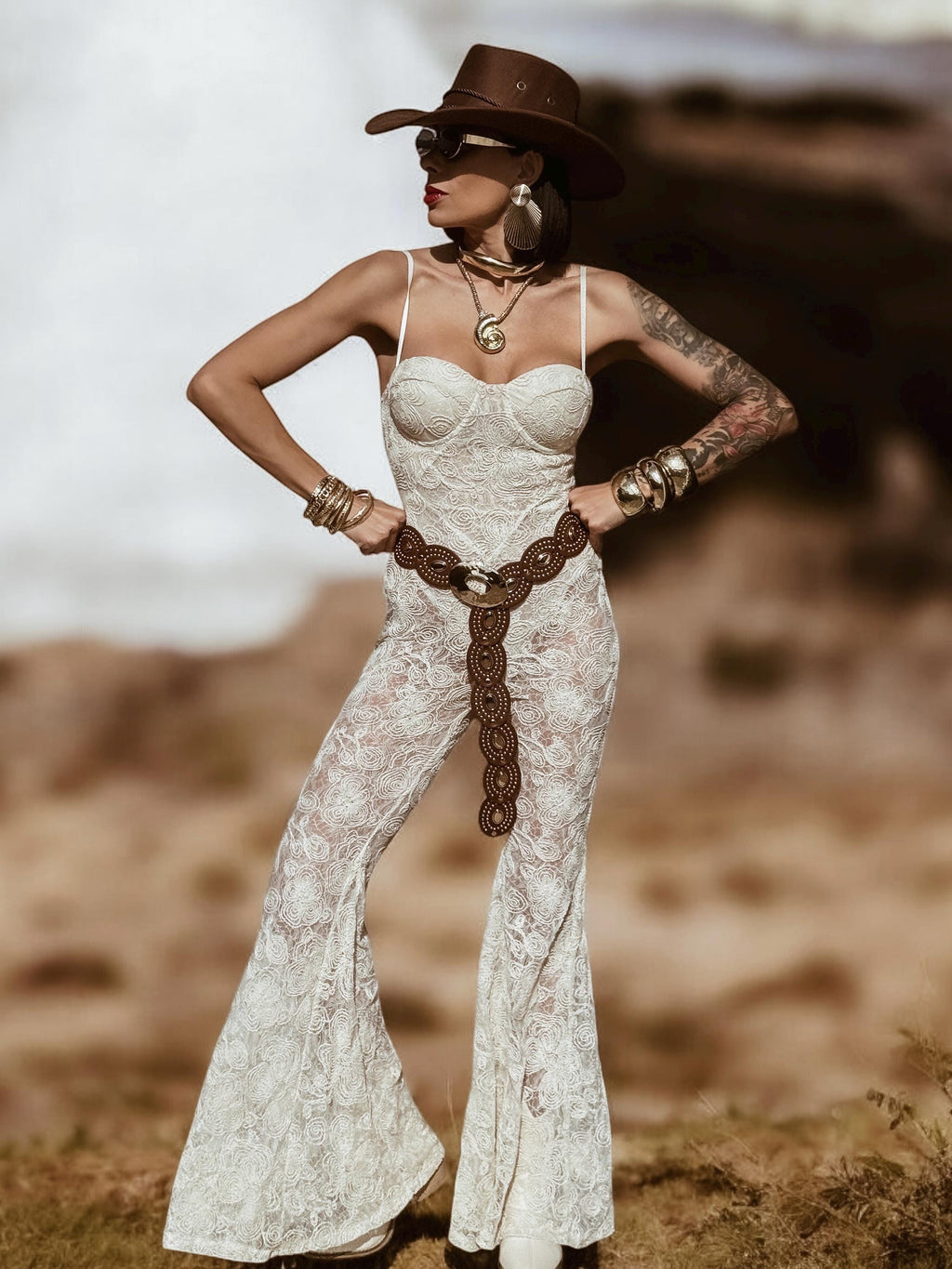 Lace Bell Bottom Jumpsuit, Cowgirl Lace Jumpsuit, Western Glam Festival Jumpsuit, Country Girl Cowgirl Outfit, Bachelorette Party Outfit