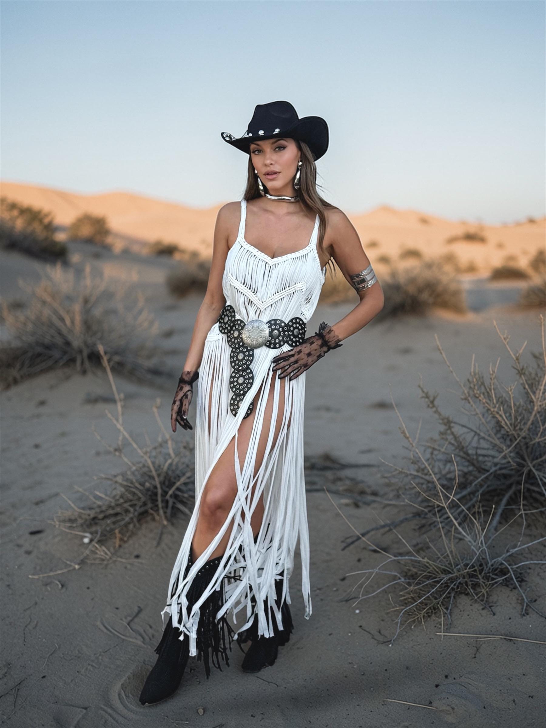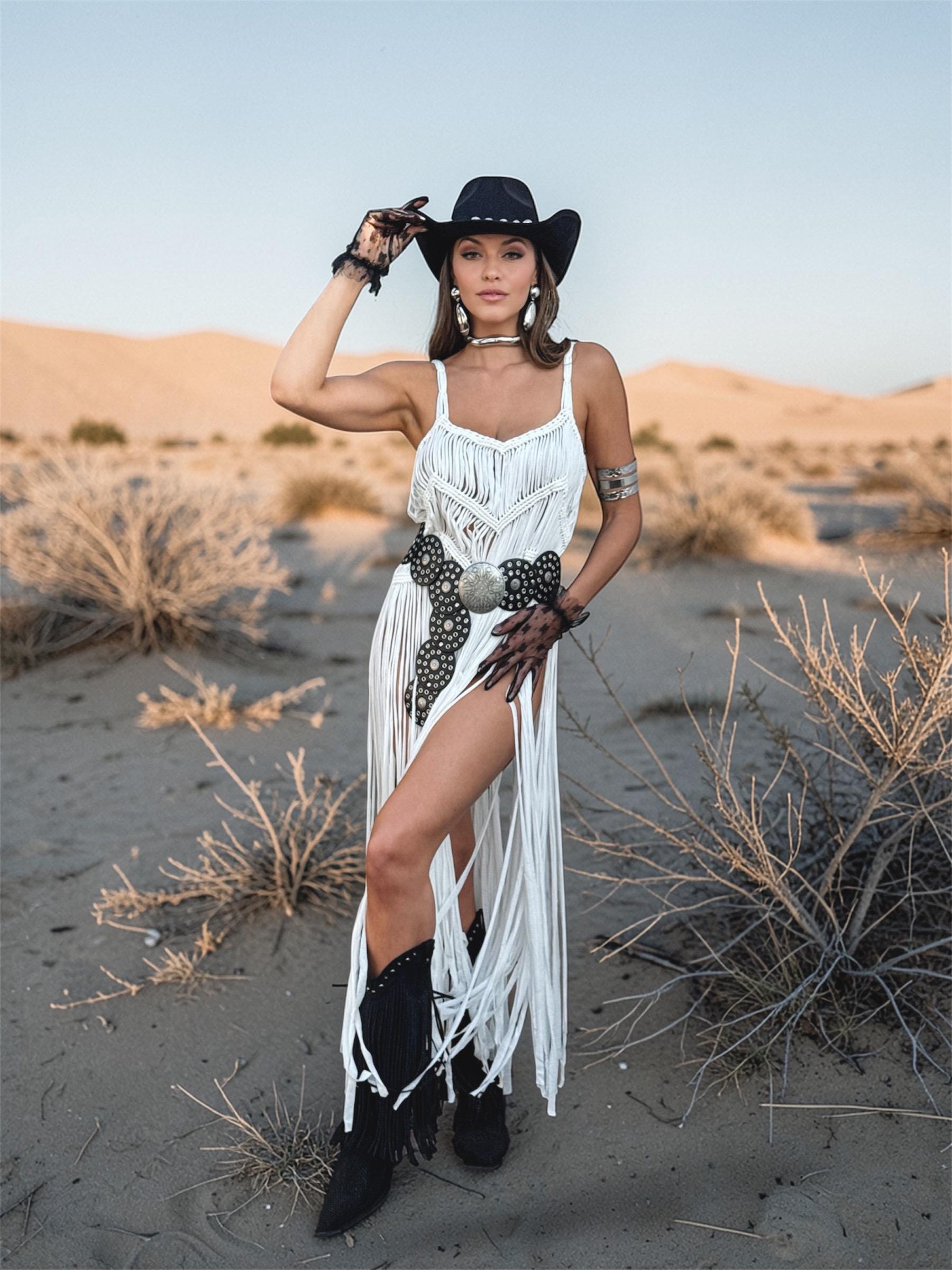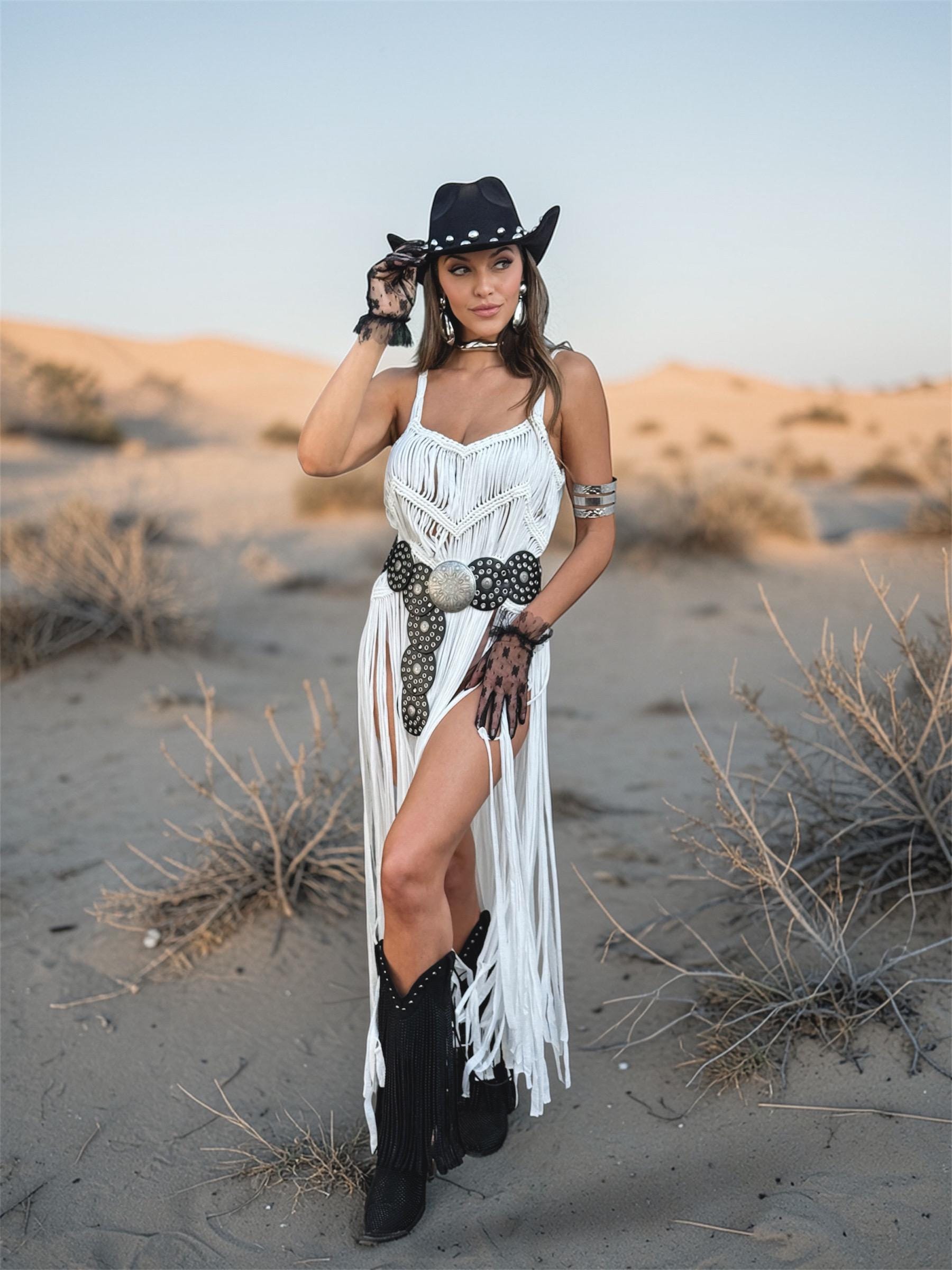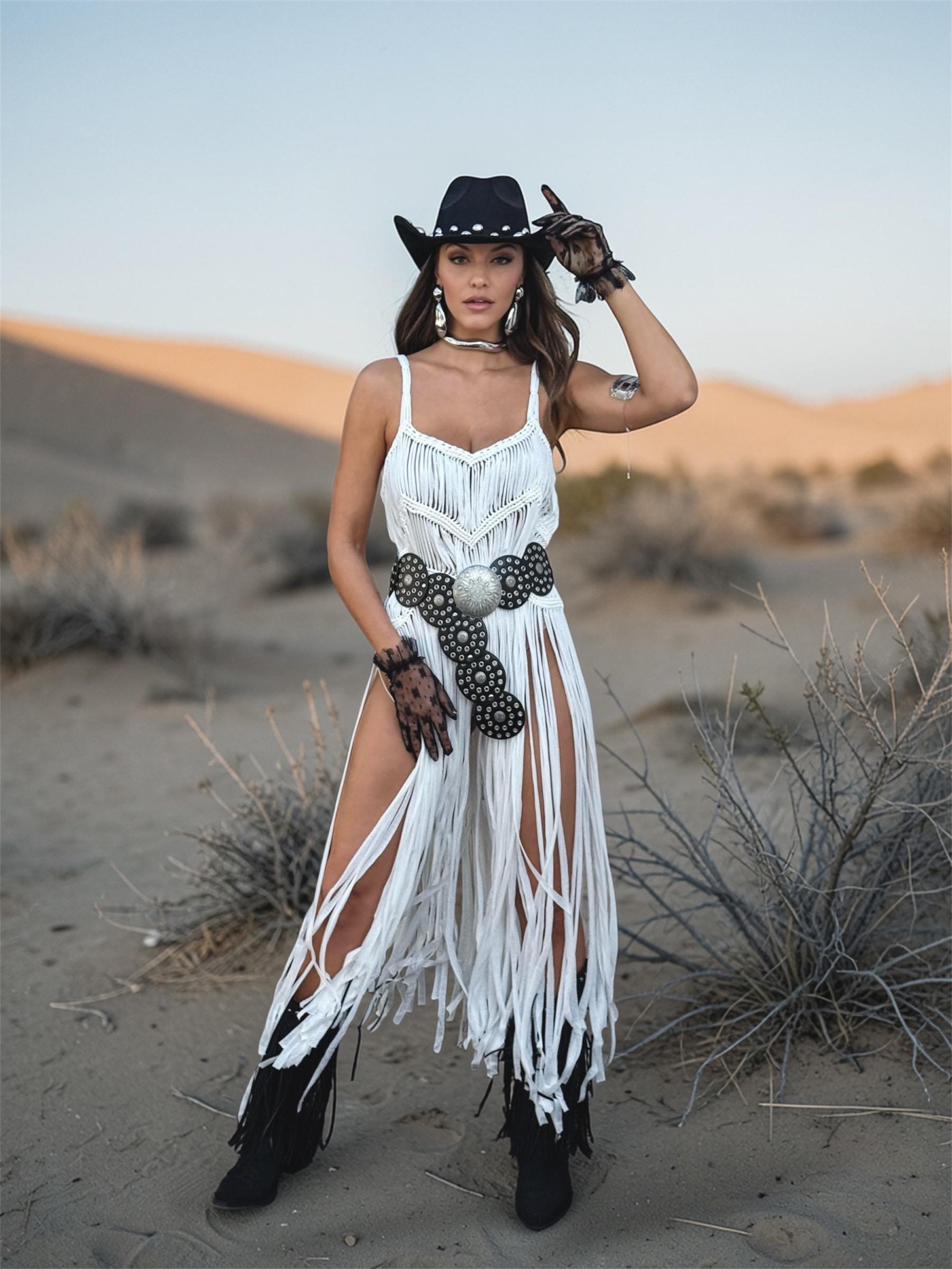 White Macrame Like Fringe Festival Dress, Cowgirl Fringe Dress, Western Festival Fringe Top, Macrame Goddess Dress, Cowgirl Festival Dress